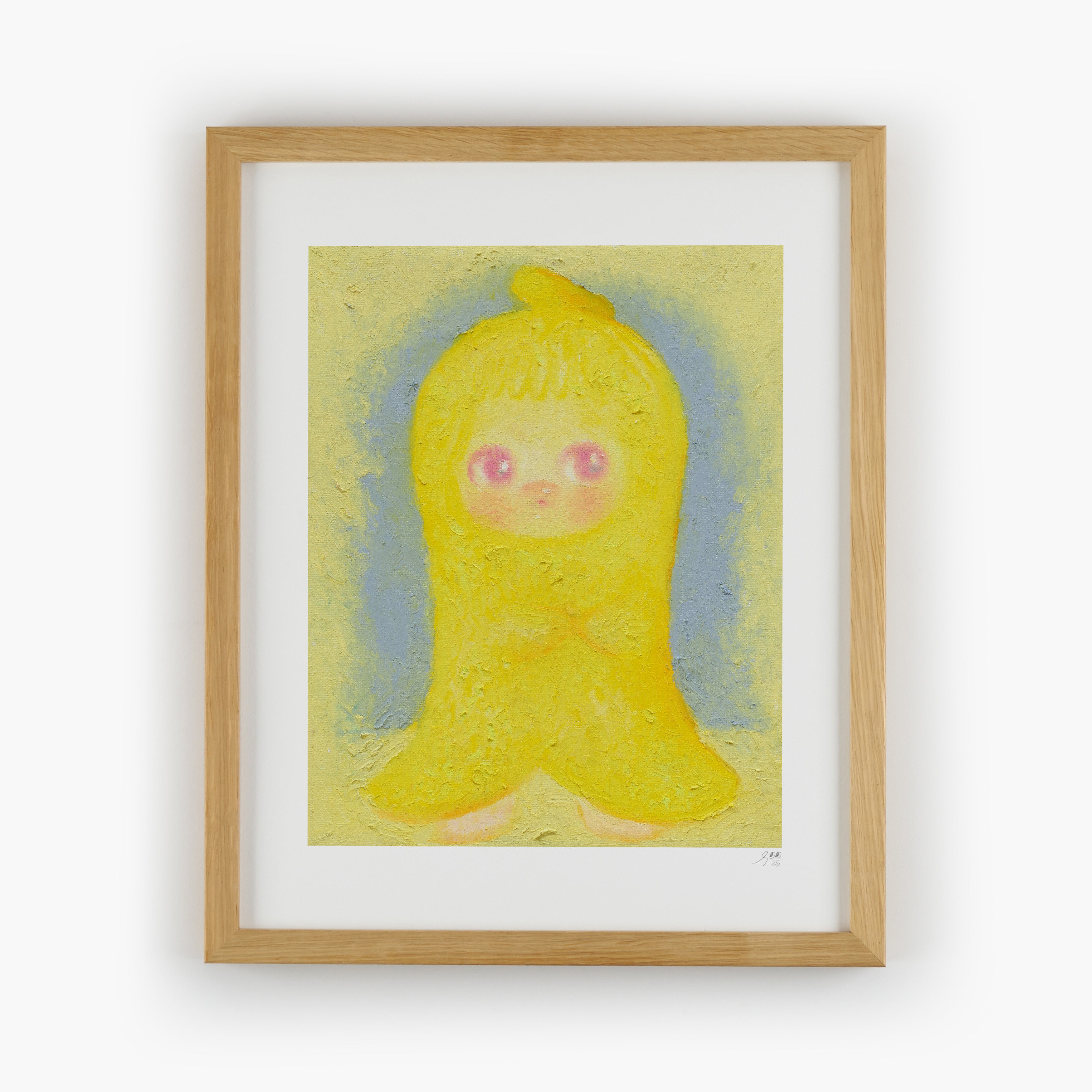 I came across a story that bananas were the first fruit to appear on Earth. This artwork embodies the imagery of beginning, birth, and shyness that Barefoot Banana represents.